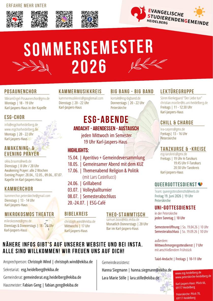 Das Sekretariat ist zurzeit nicht besetzt. Bitte sendet alle wichtigen Anfragen an esg.heidelberg@ekiba.de.